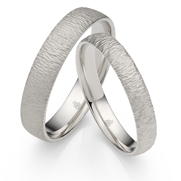 Weißgoldene Ringe mit einer strukturierten Oberfläche (Relief).